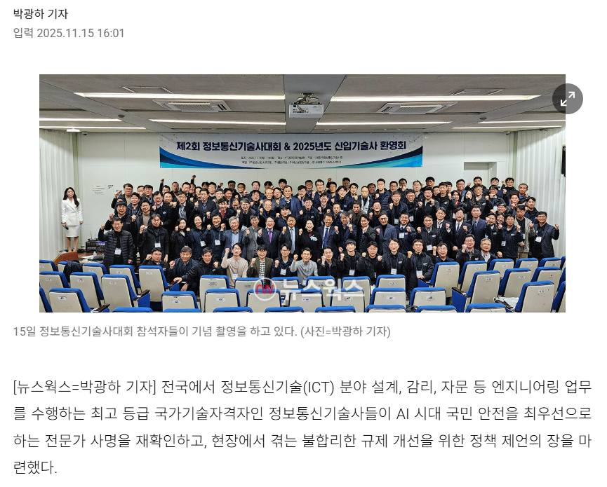 에스비정보기술 - 제2회 정보통신기술사대회 참가 페이지 정보 관리자 25-11-20 14:32 본문 [기사링크] https://www.newsworks.co.kr/news/articleView.html?idxno=818914 관련링크 https://blog.naver.com/sbit107/224082237110 22회 연결 리스트